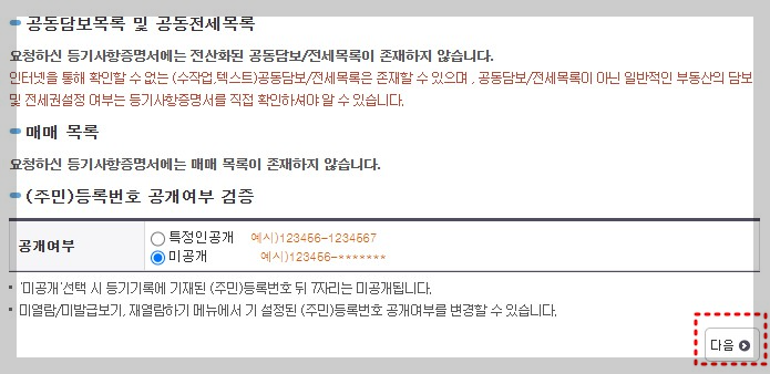 - 본인 인증 후 원하는 부동산의 주소 입력 → 등기부등본 열람