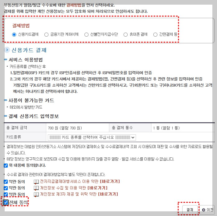 - 열람 수수료: 700원 / 발급 수수료: 1,000원