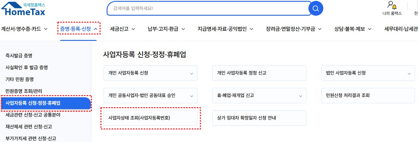 2️⃣ 사업자등록번호 조회 방법