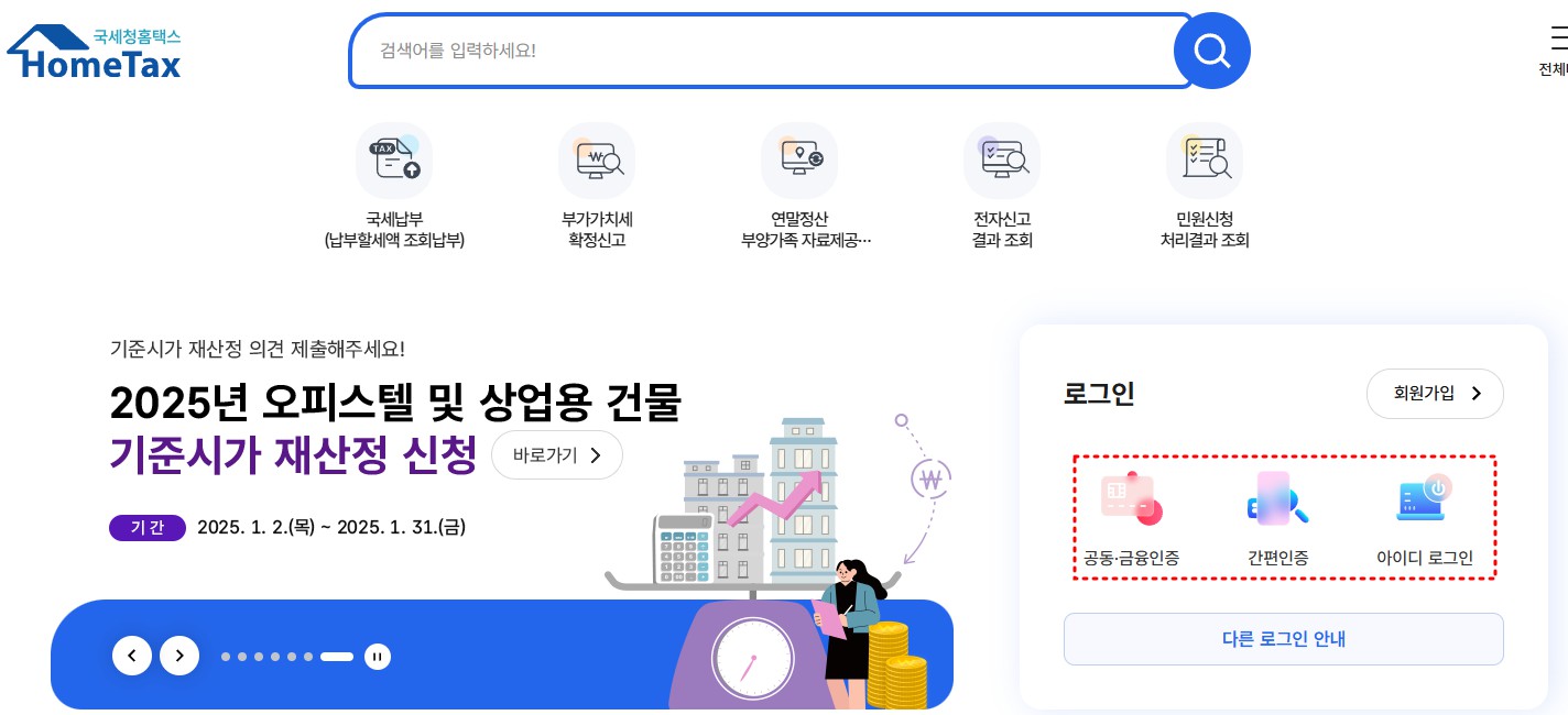 - 국세청 홈택스 접속 → 홈택스 바로가기