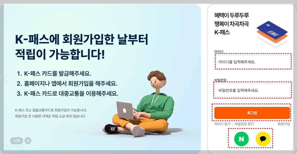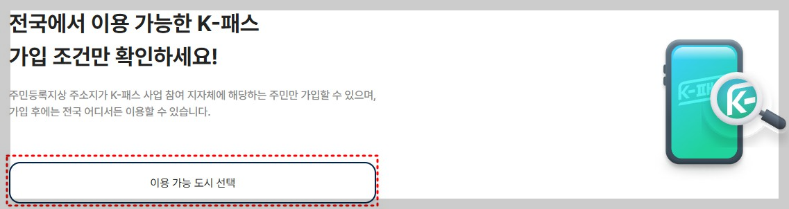 - 카드 수령 후, K패스 공식 누리집(korea-pass.kr) 또는 K패스 앱에서 회원가입을 진행합니다.